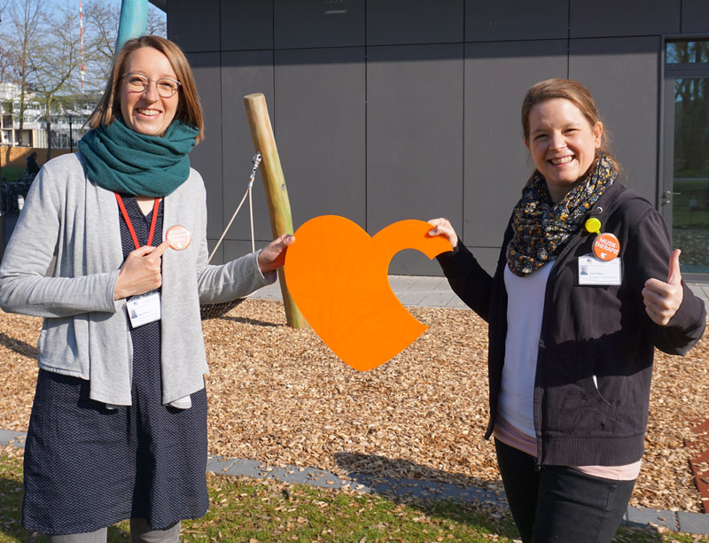 Diese neuen Buttons weisen nun unsere Psychologin Meike Klinge und unsere Musiktherapeutin Julia Hüging am ELKI aus. Die Buttons sollen sie im Klinikgeschehen sichtbarer machen und für Eltern als Ansprechparterinnen kennzeichnen. Manchmal sind es die ganz kleinen Dinge, die das Leben einfacher machen …