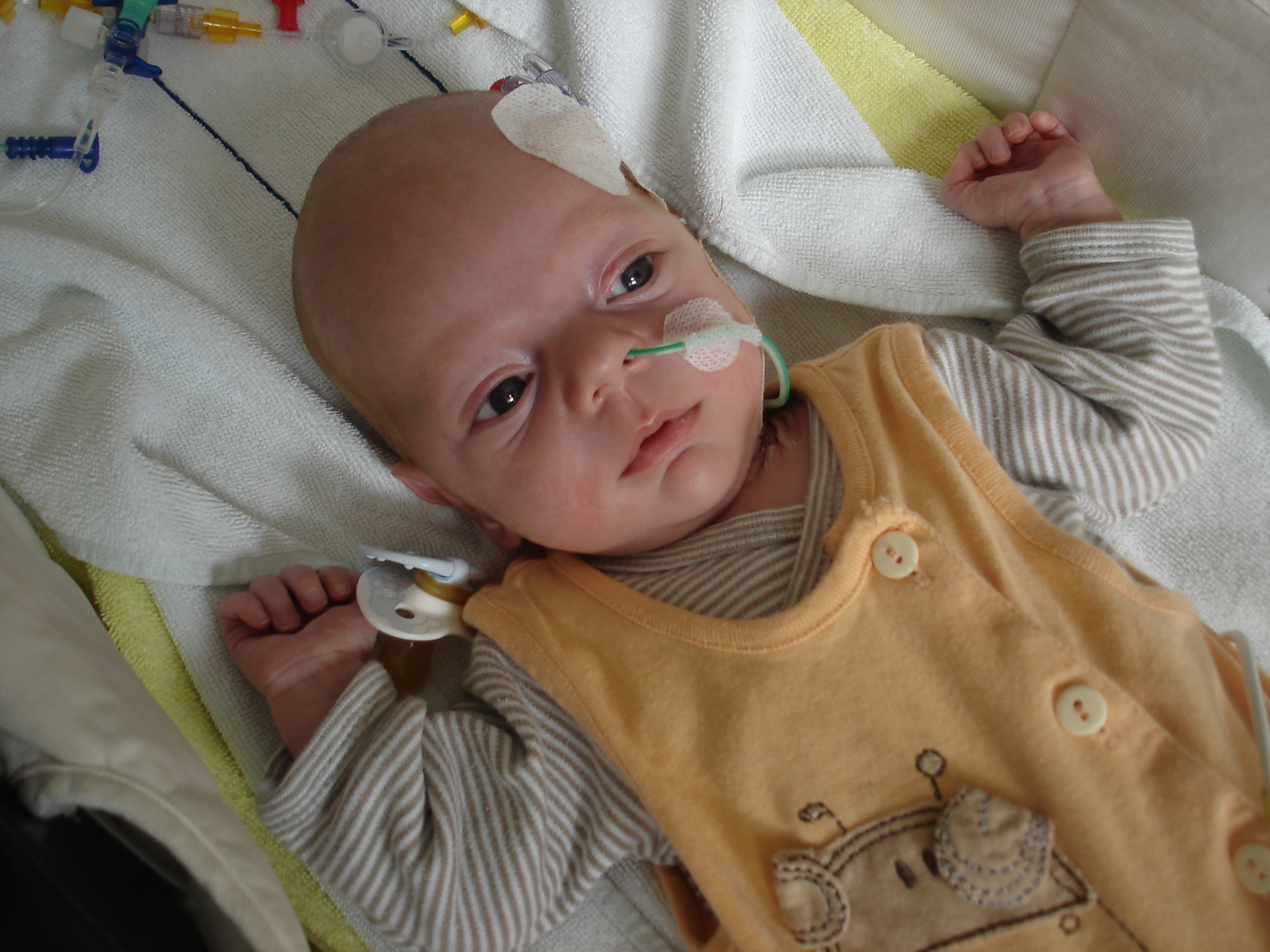 Mitte April erblickte der kleine Bruno das Licht der Welt. Er wurde per Kaiserschnitt in der Frauenklinik der Uniklinik Bonn geboren. Aufgrund einer weiteren Erkrankung am Darm wurde der Kleine schon einen Tag später auf seine erste Operation vorbereitet und musste die ersten zehn Lebenswochen im Krankenhaus verbringen.