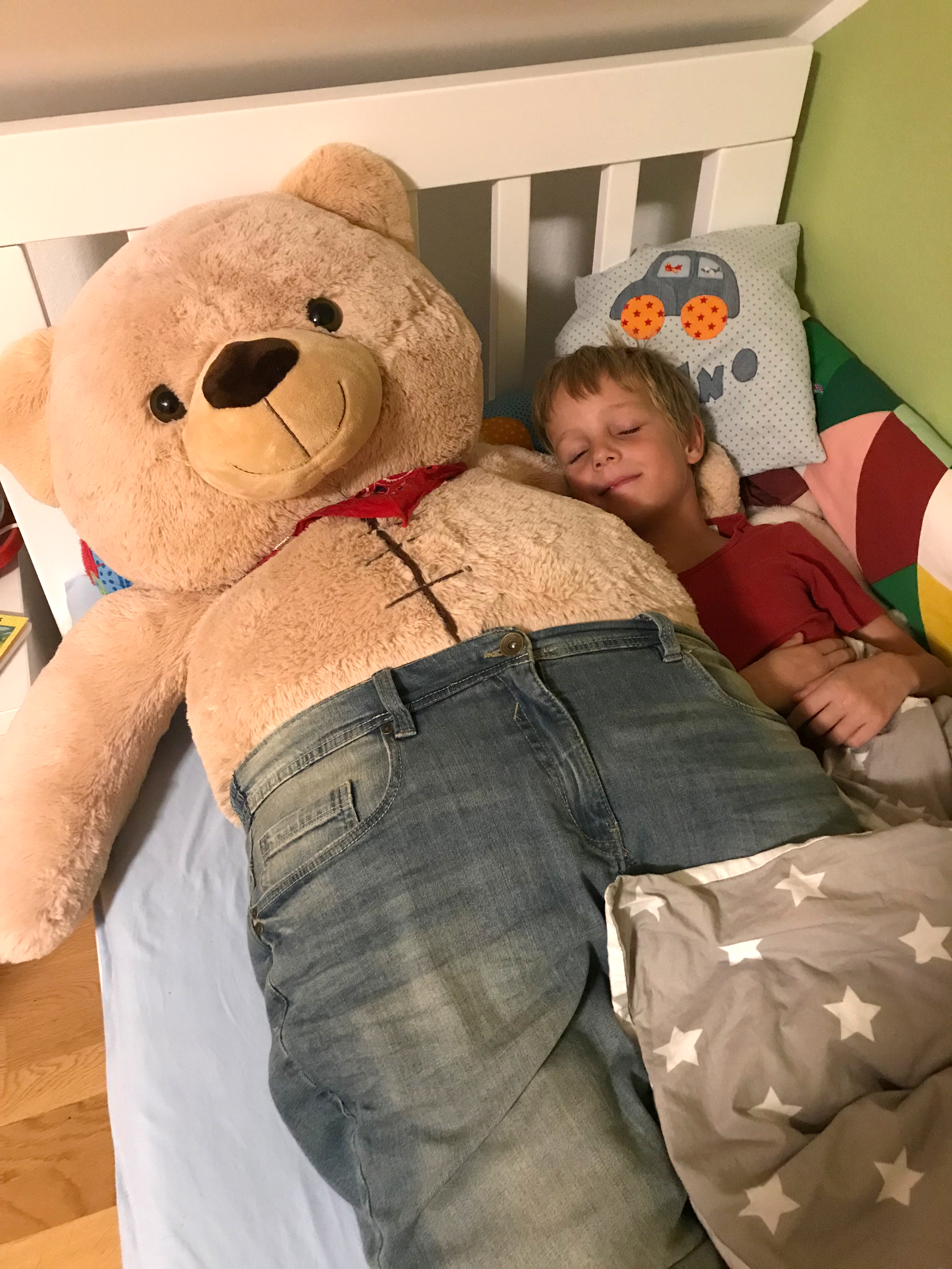 Einer darf bei unseren Treffen mit Bruno niemals fehlen: kinderherzen-Bär Moritz. Den flauschigen Freund hat Bruno von Anfang an in sein Herz geschlossen. Einmal durfte Moritz sogar bei ihm übernachten. Was die beiden vor dem Einschlafen wohl noch getuschelt haben? Vielleicht haben sie das Geheimrezept für ihre Bärenkräfte ausgetauscht …