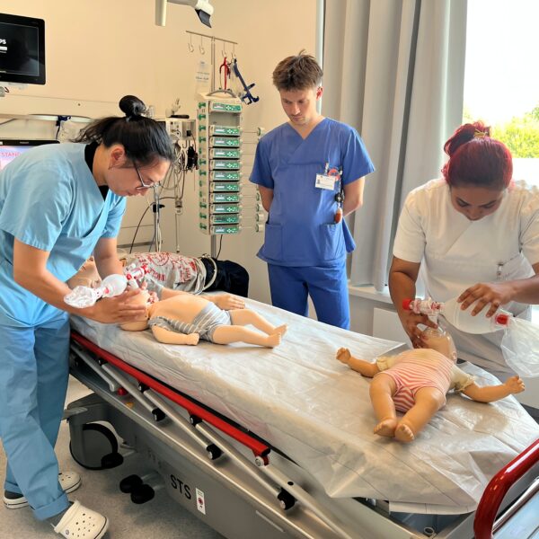 Bonn, 07. Oktober 2025: Das Universitätsklinikum Bonn (UKB), die Medizinische Fakultät und der Verein Kinderherzen haben im Eltern-Kind-Zentrum des UKB die zweite Phase der „Kinderherzen-IPSTA“ eingeläutet. Ziel der interprofessionellen Ausbildungsstation (IPSTA) ist es, angehende Pflegekräfte sowie Ärztinnen und Ärzte für die langfristige Arbeit im sehr herausfordernden Fachbereich der Kinderherz-Intensivmedizin zu motivieren. Künftig soll die Kinderherzen-IPSTA auch anderen Kliniken im deutschsprachigen Raum als Vorbild dienen. Im Rahmen der ab Januar hinzukommenden Projektkomponente „Train the Trainer“ werden erfahrene Ausbildungsbegleiter ihr Wissen an andere Kinderherz-Stationen weitergeben.